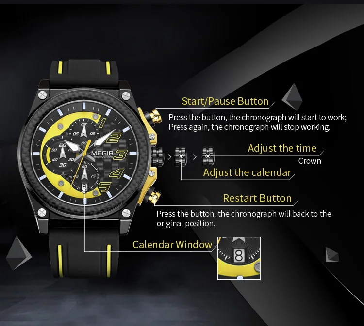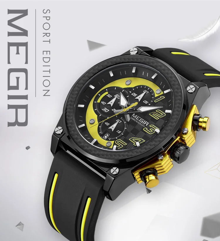 The MEGIR sports watch combines style and functionality, ideal for men seeking a practical and elegant accessory. Featuring a chronograph and water resistance, it's perfect for outdoor activities and everyday wear.