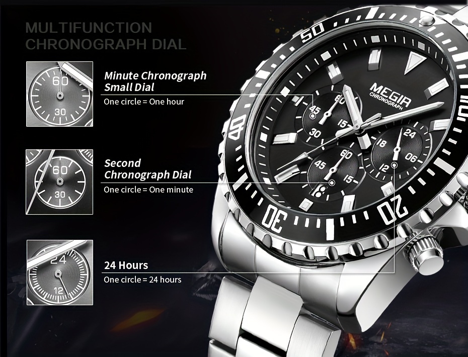 The Megir analog chronograph watch combines style and functionality, perfect for men seeking an elegant and practical accessory. With a sophisticated design and useful features, it's ideal for everyday wear and special occasions.