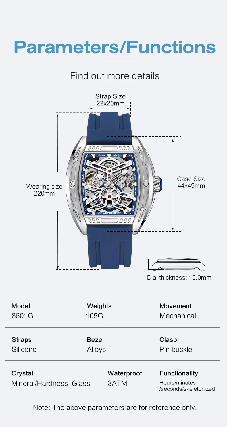 The MEGIR Men's Mechanical Watch combines style and functionality, ideal for the modern man. With a sporty design and water-resistant features, this watch is perfect for any occasion.