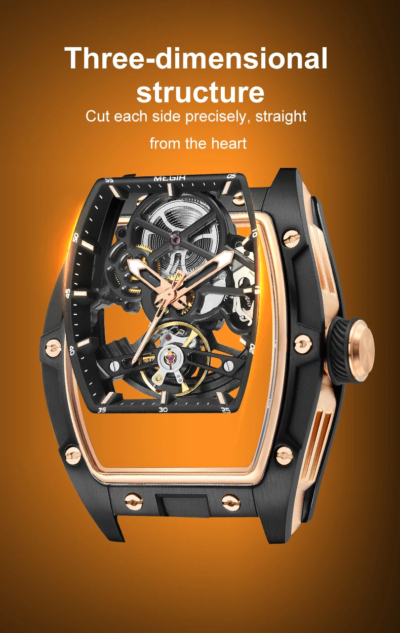 The MEGIR automatic watch combines style and functionality, featuring a skeleton design that highlights its internal mechanism. Water-resistant and with a stainless steel finish, it's the perfect choice for men seeking elegance and durability in an accessory.