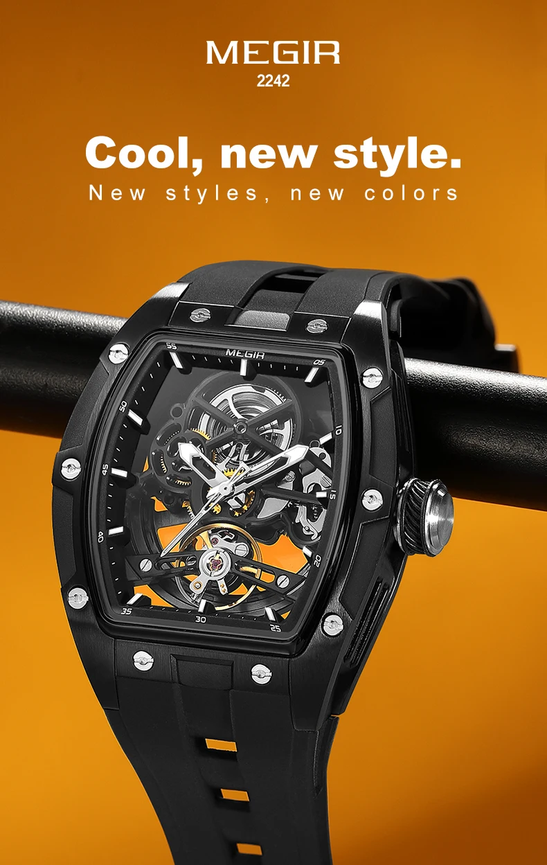 MEGIR 2242 Men’s Automatic Watch with Skeleton Design and Silicone Strap
