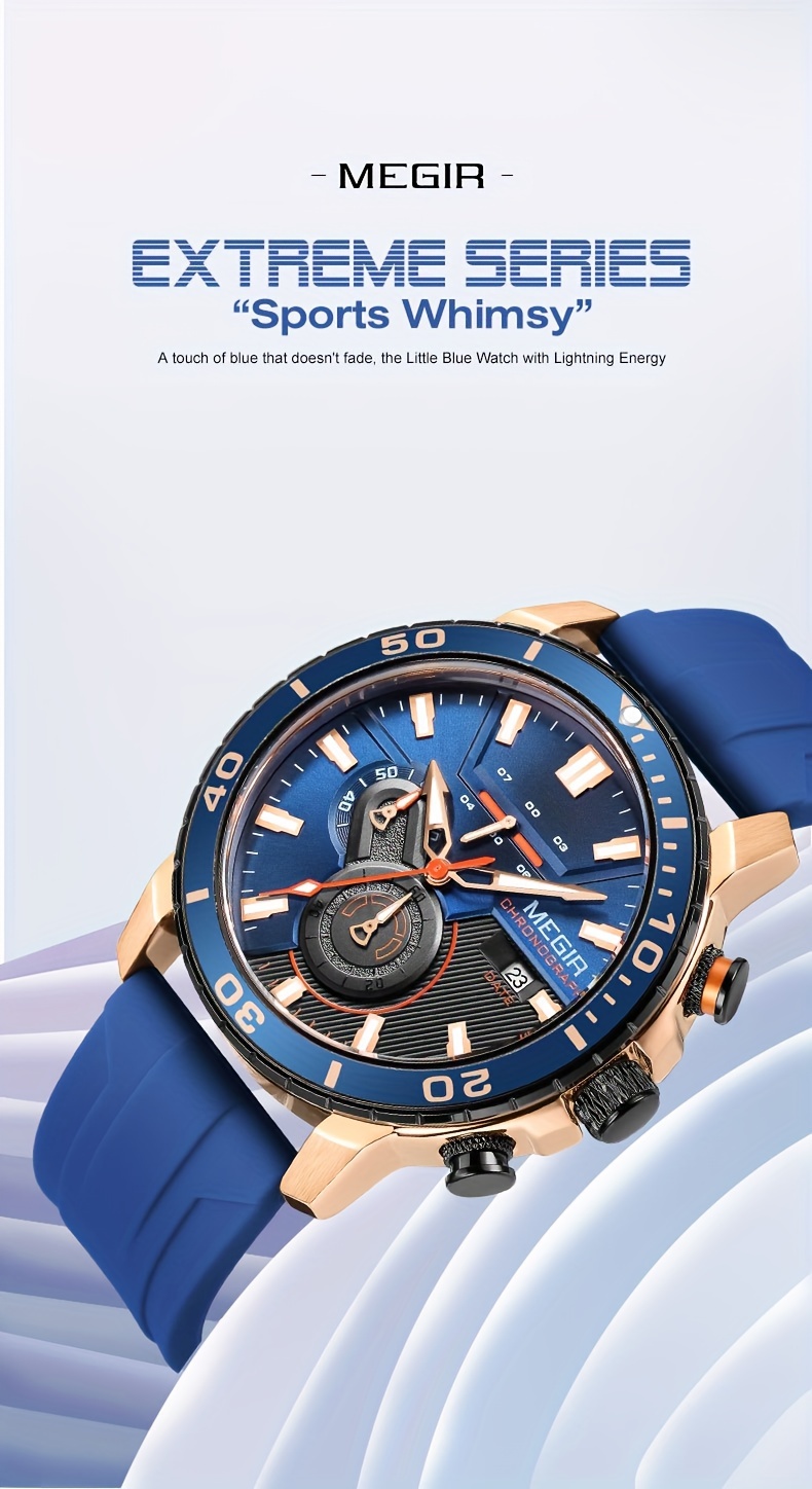 O relógio desportivo MEGIR combina estilo casual e funcionalidade, ideal para o dia a dia. Com um design moderno e características práticas, como o cronógrafo e a resistência à água, é perfeito para quem procura um acessório opcional.